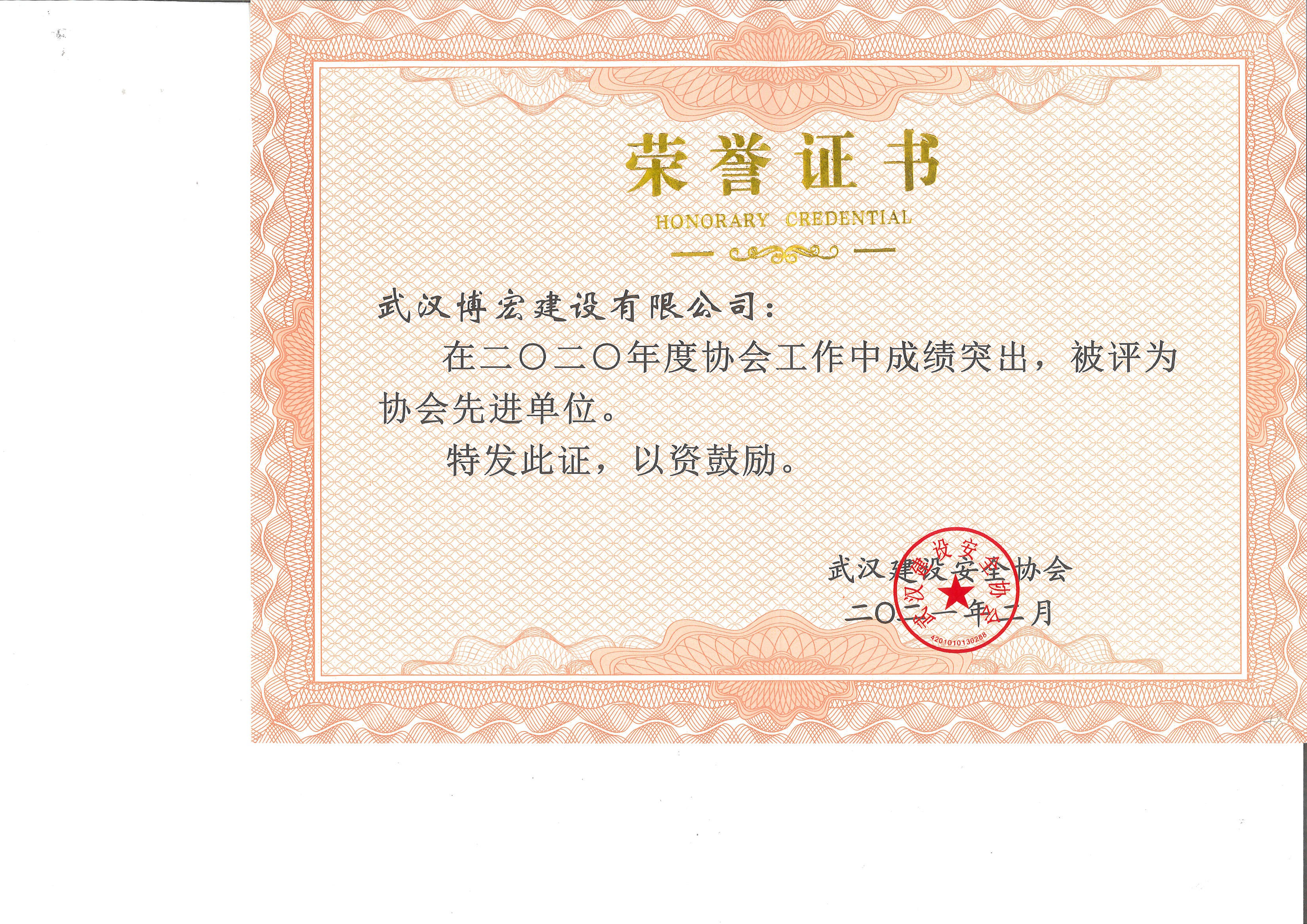 武漢市建設(shè)安全協(xié)會先進單位