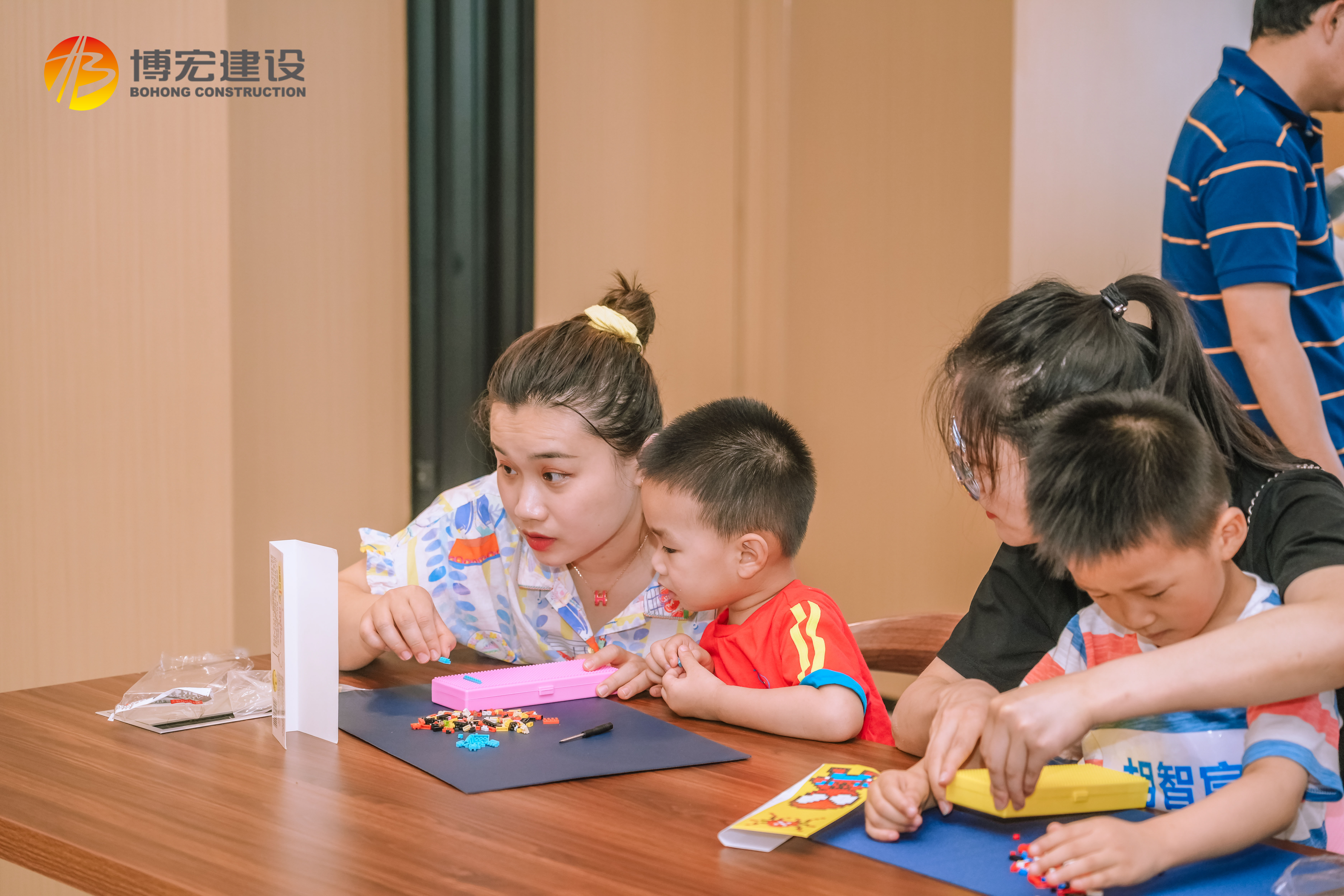 在專業(yè)老師帶領(lǐng)下,全體成員進行DIY“積木文具盒”。