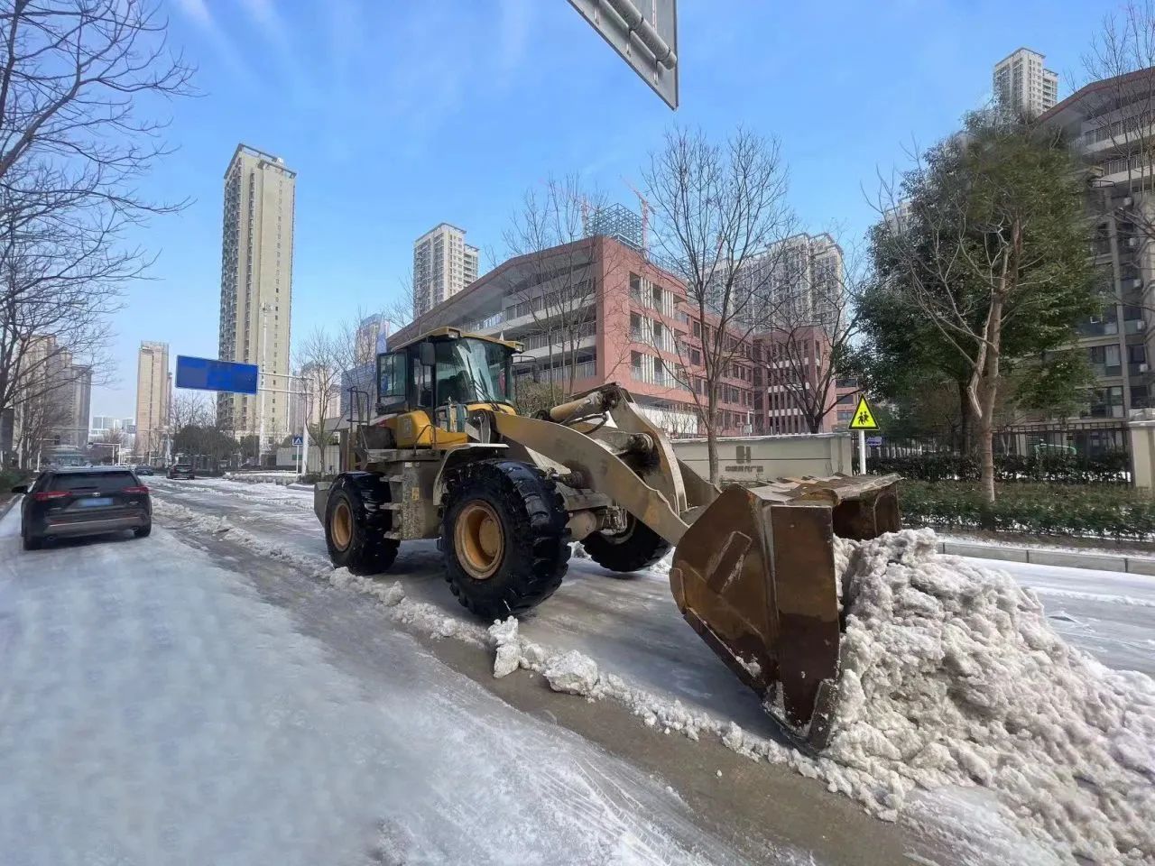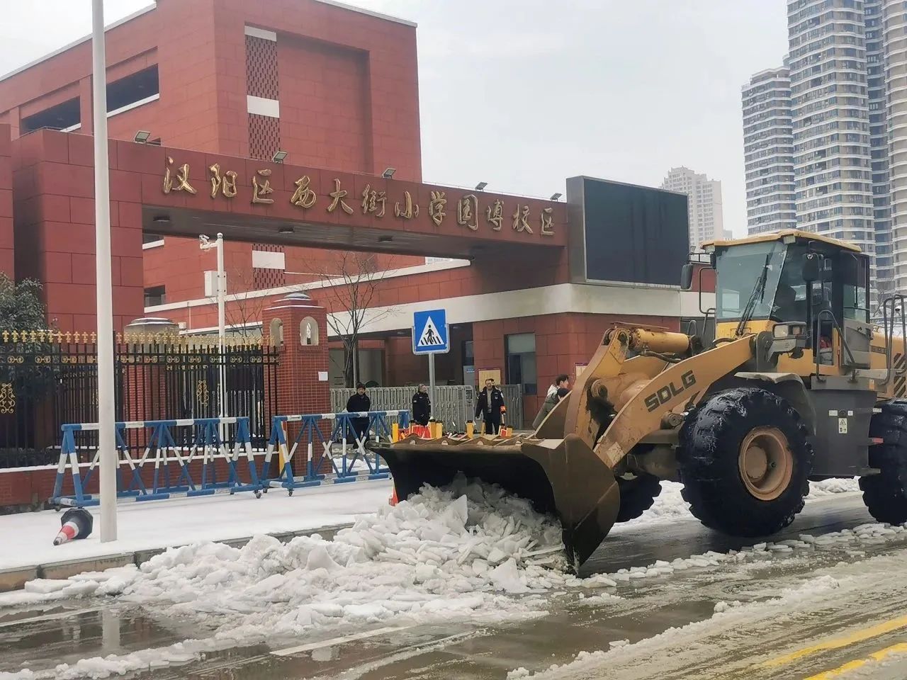 本次應(yīng)急行動累計(jì)出動61人次,鏟車14臺,巡查車輛7臺,撒鹽車輛3臺,撒融雪劑0.5噸,共對五里墩小學(xué)、翠微中學(xué)、七里小學(xué)、武漢市第三中學(xué)、西大街至誠小學(xué)、墨水湖小學(xué)東校區(qū)等八所學(xué)校道路的積雪進(jìn)行了清理,并鏟除路面結(jié)冰。