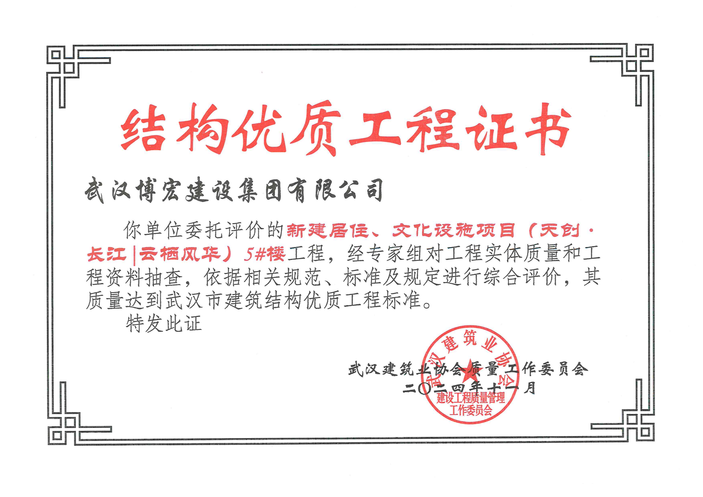 武漢市建筑結(jié)構(gòu)優(yōu)質(zhì)工程